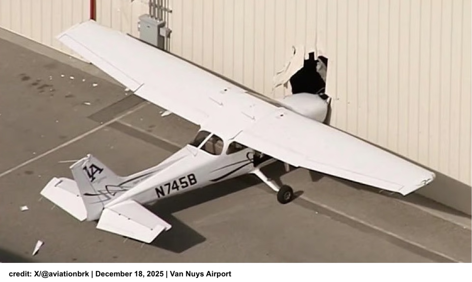 VAN NUYS, Calif. — A stolen single-engine aircraft crashed into a hangar at Van Nuys Airport early on Dec. 18, prompting an FBI investigation and reigniting security concerns among local residents and experts.